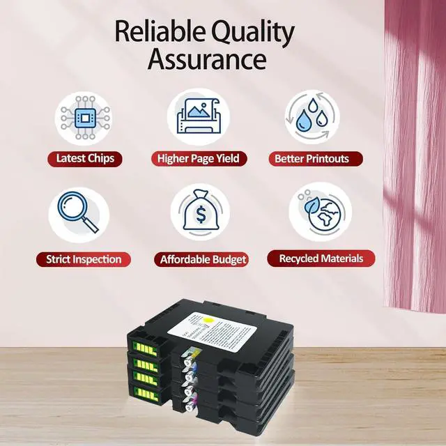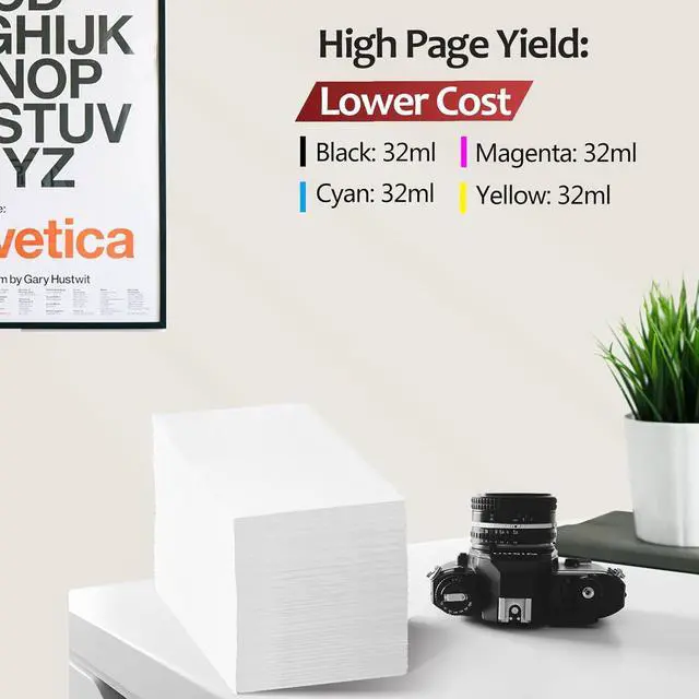 Package contents: 1×black:32ml, 1×magenta:32ml, 1×cyan:32ml, 1×yellow:32ml, total 4 packs