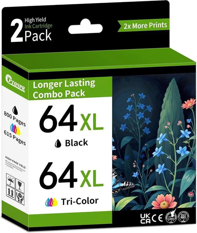 Package Included: 64XL black Ink Cartridge, 64XL color Ink Cartridge, 2 pack