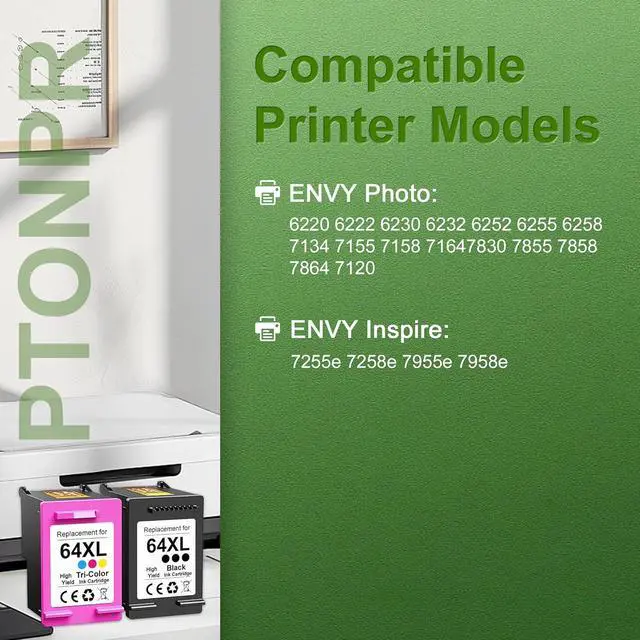 Compatible Printers: 64XL ink cartridges work for ENVY Photo 6220 6222 6230 6232 6252 6255 6258 7134 7155 7158 7164 7830 7855 7858 7864 7120 ENVY Inspire 7255e 7258e 7955e 7958e printer
