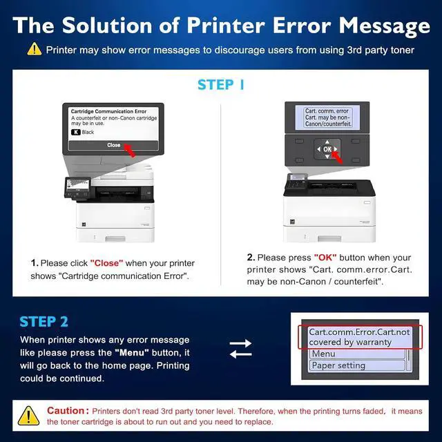 Compatible Printers: Compatible for Canon 057 toner cartridge to work with Canon imageCLASS MF440 series printer: MF445dw MF448dw MF449dw MF443dw; imageCLASS MF450 series printer: MF451dw MF452dw MF453dw MF455dw; imageCLASS LBP220 series printer: LBP226dw LBP227dw LBP228dw LBP223dw LBP236dw LBP237dw