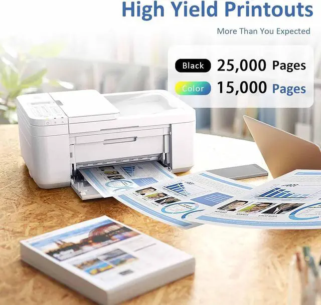 High Page Yield: Get more printing done with an impressive yield of up to 25,000 pages for black and 15,000 pages for color per cartridge, offering long-lasting performance for your printing needs