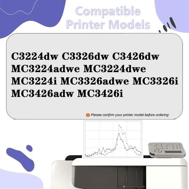 Confirm your printer model first. The toner refill powder is compatible for toner cartridges of C3224dw C3326dw C3426dw MC3224adwe MC3224dwe MC3224i MC3326adwe MC3326i MC3426adw MC3426i Printers