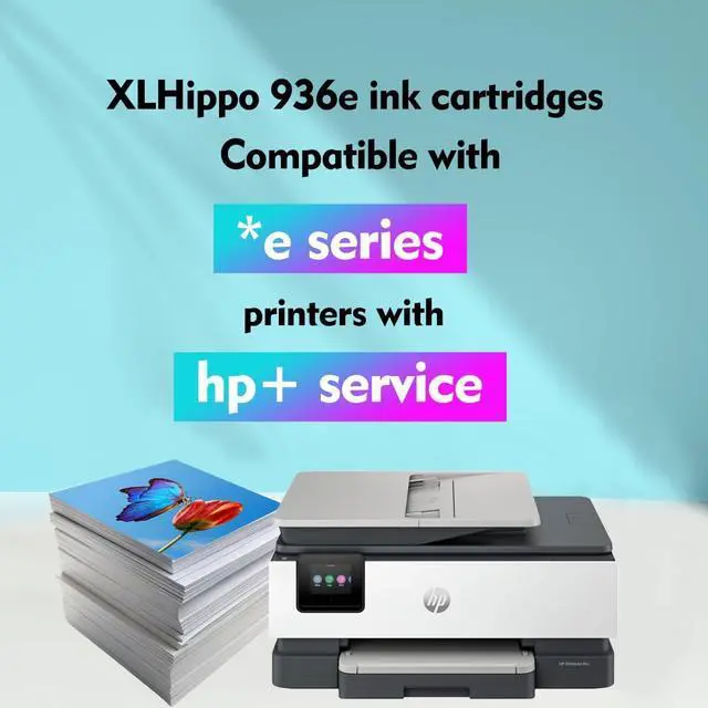 936e / 936xl black and color combo pack replacement for hp936 ink cartridges and hp 936e EvoMore ink cartridges, tracking accurate ink level, comptiable for *e seires printer, support e series printer which activated HP+(hp instant ink) service