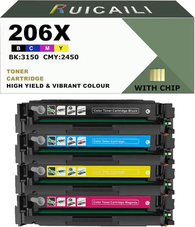 Package Contents:total 4 pack 206X W2110X toner cartridges.( Black / Cyan / Magenta / Yellow )