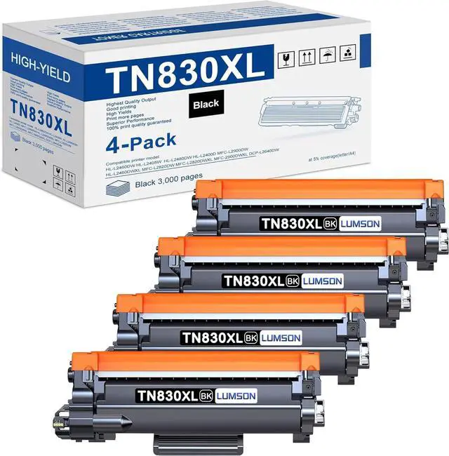 Package Contents: 4 Pack High Yield TN830XL TN830 XL/V Black toner cartridges