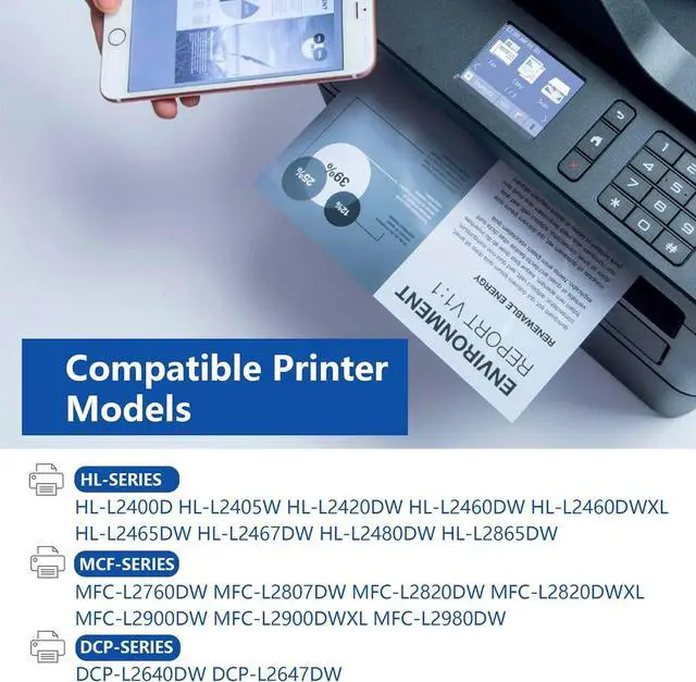 Compatible Models: DCP-L2640DW DCP-L2647DW HL-L2400D HL-L2405W HL-L2420DW, HL-L2460DW HL-L2460DWXL HL-L2465DW HL-L2467DW HL-L2480DW HL-L2865DW MFC-L2760DW MFC-L2807DW MFC-L2820DW MFC-L2820DWXL MFC-L2900DW MFC-L2900DWXL MFC-L2980DW printers
