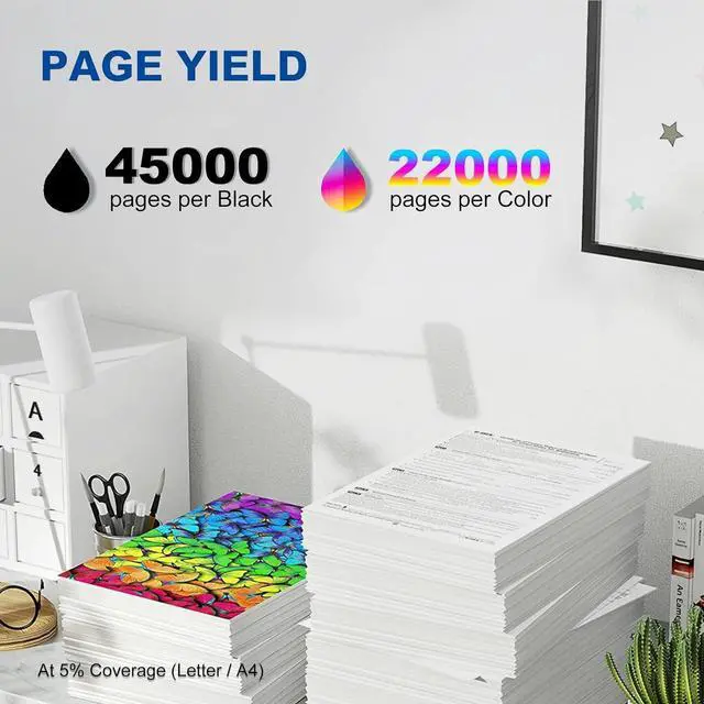 Impressive Page Yield: Each black/83D0HK0 toner cartridge prints up to 45000 pages, each color(83D0HC0/83D0HM0/83D0HC0) toner cartridge prints up to 22000 pages (5% coverage on A4 papers)