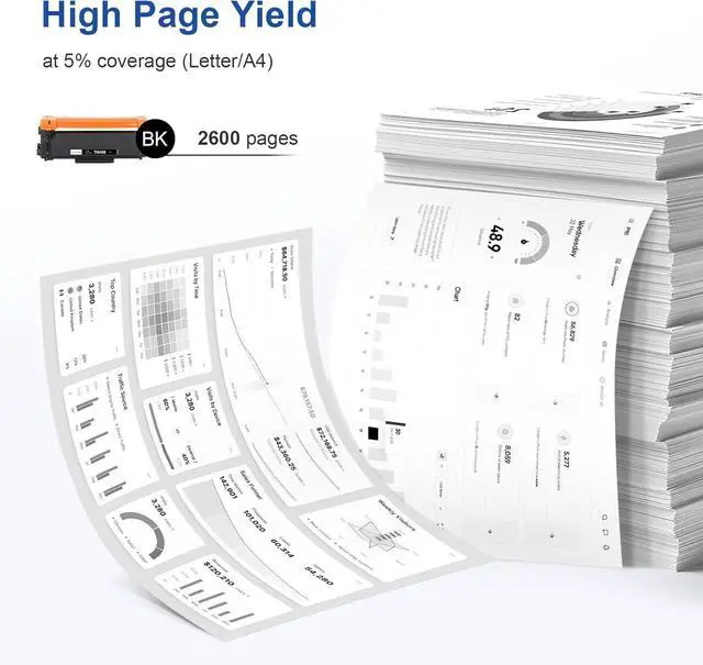 High Page Yield: Up to 2,600 Pages per TN 450 black toner Cartridge (at 5% coverage of A4 paper,depends on printer and usage)