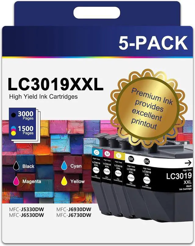 Products Include: 5 pack LC3019XXL ink cartridges (2BK/1C/1M/1Y)