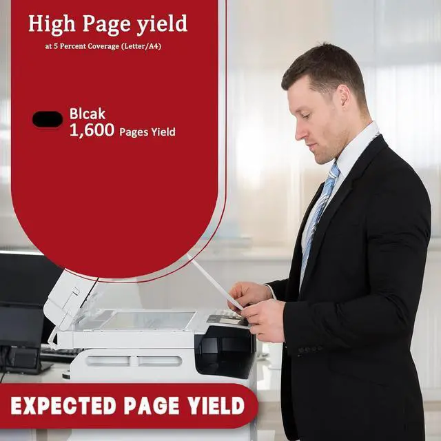 Efficient printing: Up to 1,600 pages in black (With 5% coverage on A4 paper)