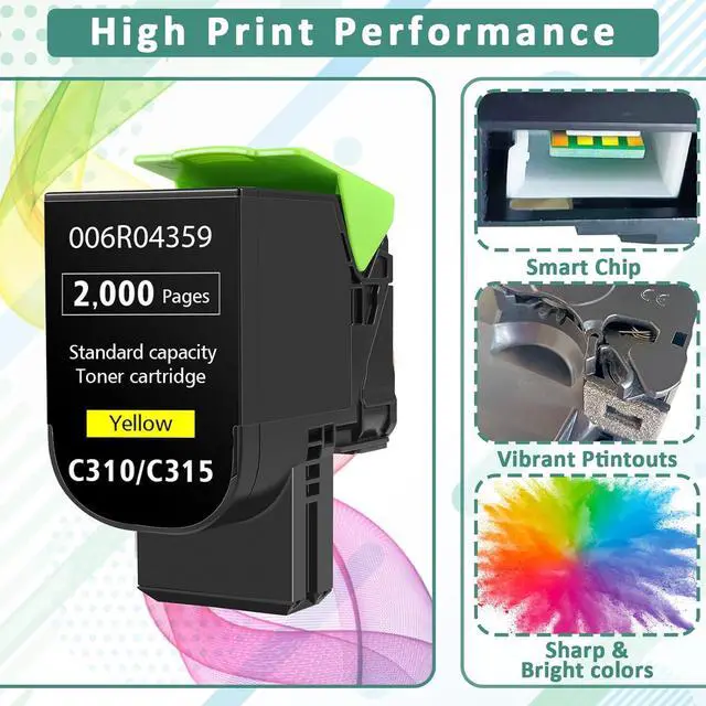 Compatible Printer:C315 toner cartridge Compatible for Xerox C310 C310DNI color printer and C315 C315DNI color multifunction printer.