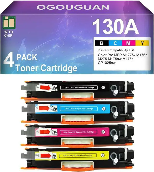 Package Contents : Compatible for 130A toner cartridges combo pack. Total 4 pack: Black Cyan Magenta Yellow