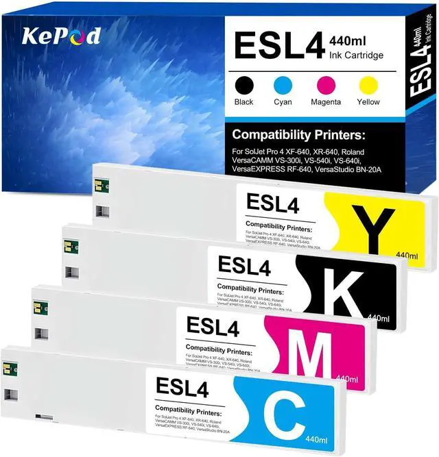 • esl4 ink cartridges:Compatible with SolJet Pro 4 XF-640, XR-640, VersaEXPRESS RF-640,for Roland VersaCAMM VS-300i, VS-540i, VS-640i, VersaStudio BN-20A