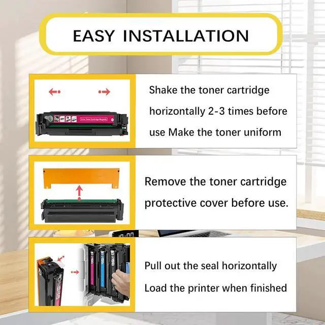 With Chip: Compatible Toner Cartridge Replacement for HP 416A W2040A W2041A W2043A W2042A Toner cartridges set comes with bulit-in chip. No need to replace chips from empty original toner before use.