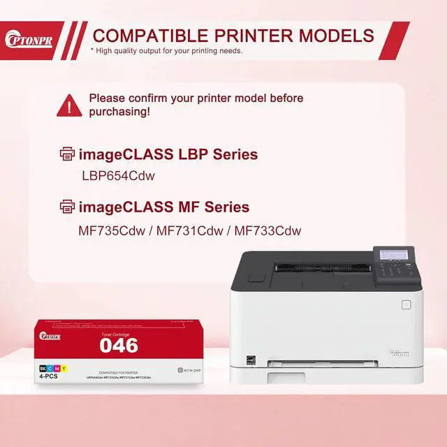 Compatible Printer Models: 046 Toner Cartridge 4 Pack Replacement for Canon ImageCLASS MF733Cdw MF731Cdw MF735Cdw ImageCLASS LBP654Cdw Printer