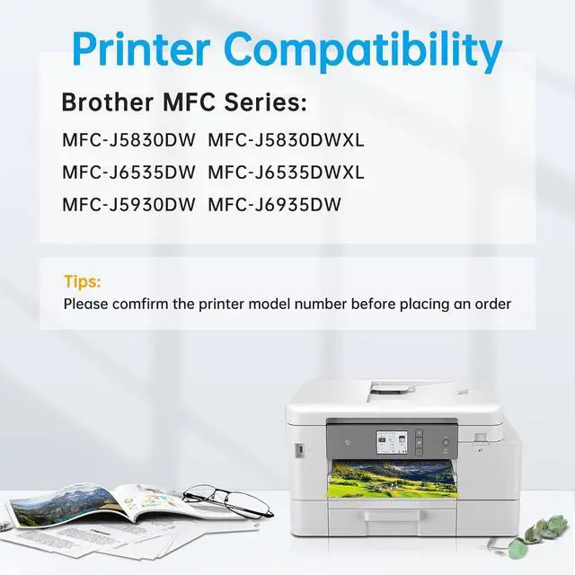 100% Compatible for Brother Printers: MFC-J5830DW, MFC-J5830DWXL, MFC-J6535DW, MFC-J6535DWXL, MFC-J5930DW, MFC-J6935DW Printer