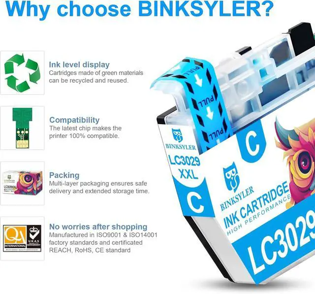Reliable Quality: All lc3029 ink cartridges are manufactured in ISO 9001 & ISO14001 factory standard and certificated by REACH, RoHS, CE standard. Each lc3029 ink cartridge is strictly tested before leaving the factory.