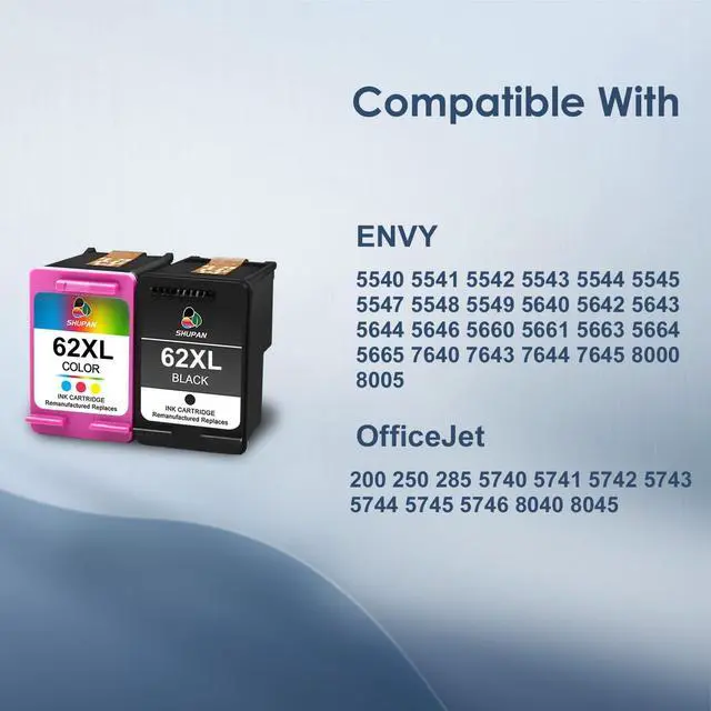 FOR 62 INK CARTRIDGES COMBO FOR HP PRINTERSENVY 5540 5541 5542 5543 5544 5545 5547 5548 5549 5640 5642 5643 5644 5646 5660 5661 5663 5664 5665 7640 7643 7644 7645 8000 8005 OfficeJet 200 250 285 5740 5741 5742 5743 5744 5745 5746 8040 8045