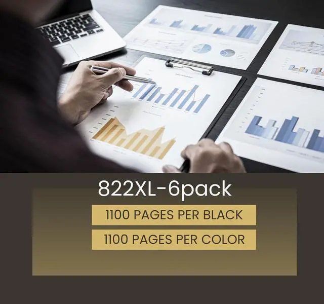 Page Yield: 1,100 pages per black 822 XL ink cartridge, 1,100 pages per color 822 XL ink cartridge (at 5% coverage)
