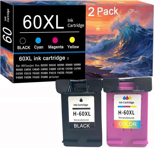 Product Model: 60XL ink cartridges black color combo pack repalcement compatible for HP OfficeJet Pro D2530 D2545 D2560 D2660 D2680 D5560 C4635 C4640 C4650 C4680 C4740 C4750 C4780 C4795 F2410 F2430 F2480 F4210 F4235 F4240 F4260 F4280 F4435 F4480 printer