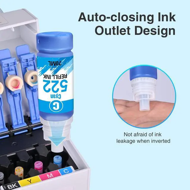 Auto Stop BottlesFaslvink Compatible for Epson 522 ink refill bottles has auto-closing bottle design, no spill, easy fill, and stay chill. Refill your Ecotank&Supertank printers easily, This works as the OEM does