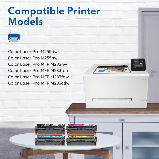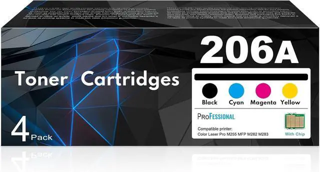 What's in the box: new 206A Toner Cartridges 4-Pack (1 Black, 1 Cyan, 1 Magenta, 1 Yellow) (with Chip)