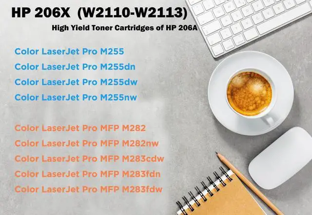 Ultra Toner provides premium compatible toner cartridges. Excellent performance as same as OEM product, but more cost-effective. This toner is brand new, compatible with HP 206X (W2110X) BK/C/M/Y high yield toner cartridges combo. Expected page high yield of BK: 3,200 pages, C/M/Y: 2,500 pages @ 5% coverage. The manufacturer is trustable, certified with ISO-9001/14001 & STMC. Compatible printers include:HP Color LaserJet Pro M255dw, M255dn, M255nw, M282nw, M283cdw, M283fdw, M283fdn. If you have any questions or need technical support, please feel free to contact us at anytime. We are happy to help you 24/7.