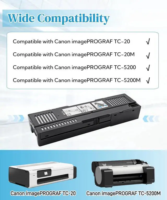 Compatibility:Perfect Fits For Canon imagePROGRAF TC-20 TC-20M TC-5200 TC-5200M wide large format printers.It prevents clogging of the print head and other problems