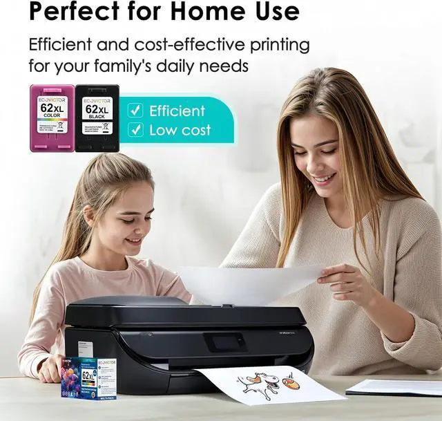 Smart Chip, Easy Monitoring: Our compatible with hp ink 62 are equipped with the latest smart chip. EcoVictor for hp ink 62xl black and color combo pack ensures full compatibility with hp printer ink 62. Monitor ink levels in real time and avoid unexpected interruptionsEcoVictor ink cartridges for hp printers 62 are ideal for busy households and workplaces.