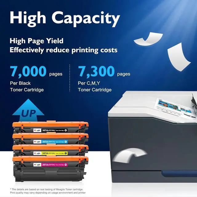 Outstanding Page Yield: Up to 7,000 pages per 307A Black Toner Cartridge, 7,300 pages per 307A color toner cartridge at 5% coverage of A4 letter