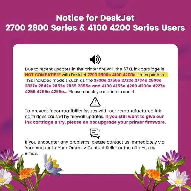 Printer Compatibility: Deskjet1255 2700 2710e 2720e 2721e 2722 2722e 2723e 2724 2724e 2725 2725e 2732 2732e 2734e 2742e 2752 2752e 2755 2755e 2800e 2810e 2820e 2842e 2852e 2855e 4110e 4120e 4121e 4122e 4123e 4130e 4132e 4133e 4152e 4155e 4158e 4175e 4255e