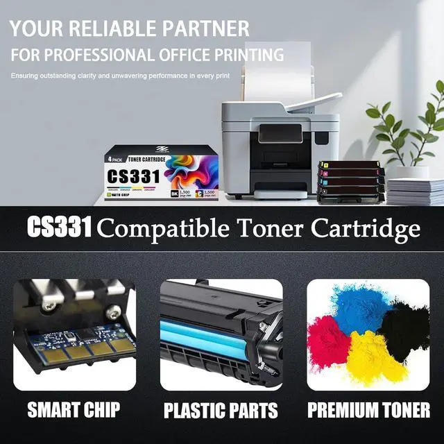 Page Yield: 1,500 Pages per CS331 Black Toner Cartridge, 1,500 Pages per CS331 Color Toner Cartridge