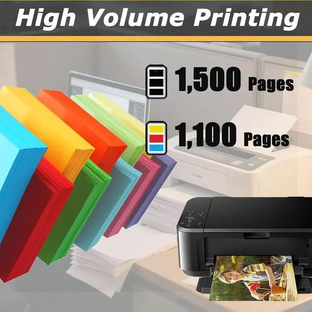 High Capacity: Black cartridge yields up to 1,500 pages, while Cyan/Magenta/Yellow cartridges yield up to 1,000 pages each (based on 5% coverage on A4 paper)