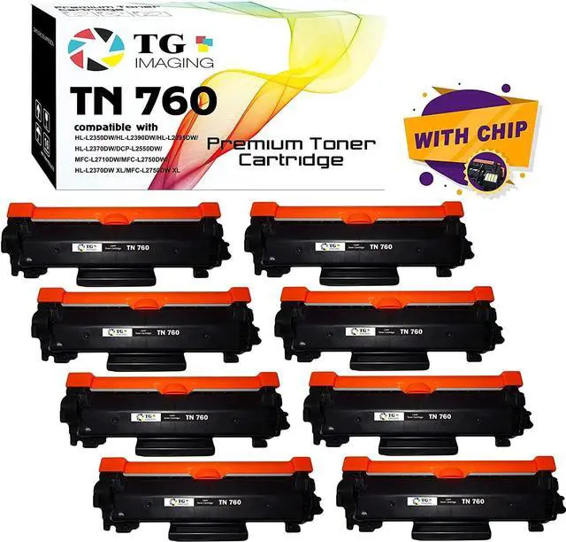 You'll get: 8-Pack TG Imaging Compatible TN760 (With Chip) Black Toner Cartridge: TN-760 8xBlack