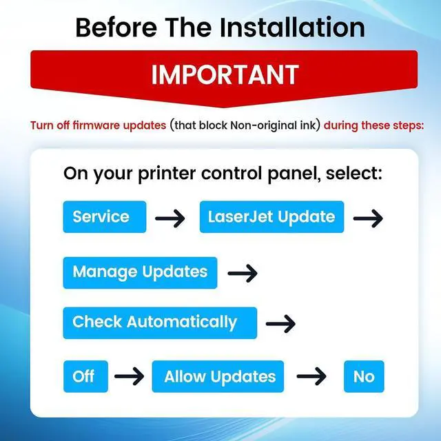 Please check your printer model before ordering. Not compatible with "E" series, Laser Jet M110we M139we M140we Printer.Don't activate and update the compatible for HP+ Program.Program activation will cause the compatible toner cartridge to be unrecognized.
