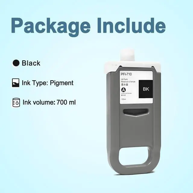 High YieldEach cartridge has a volume of 700ml, and the complete set contains MBK,BK,CY,MG,YL five colors, providing more printing output support.