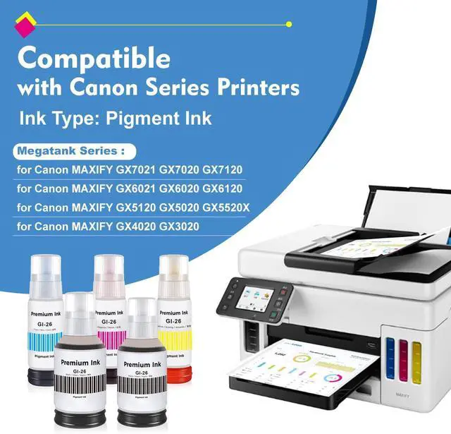 Reliable & Leak-Proof DesignEngineered with precision to prevent clogging, leaks. Guaranteed consistent ink flow for uninterrupted printing. Designed for seamless integration with MAXIFY GX6020 GX6120 GX6021 GX7020 GX7020X GX7120 GX7120X GX7021 GX3020 GX4020 GX5020 GX5120 GX5520X MegaTank Printer