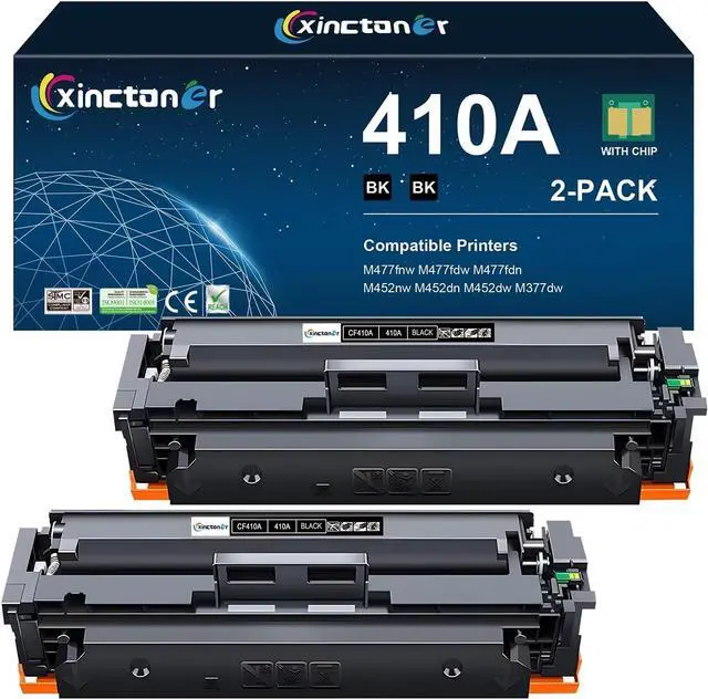 Product Name: Xinctoner 410A black toner cartridge 2 Pack (with chip) high yield 2,300 pages replacement for HP M477fnw M477fdw M452nw toner cartridge