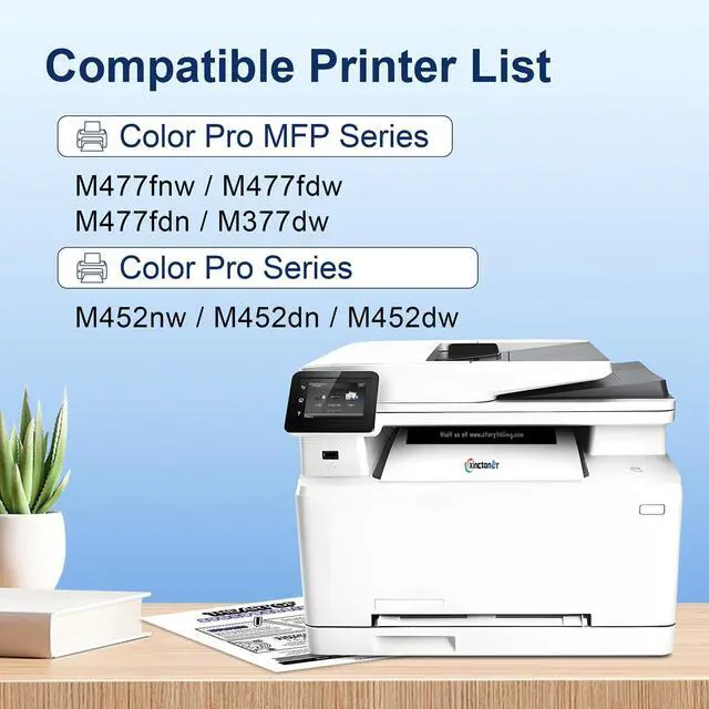 Compatible printers: 410A Toner Cartridge Compatible for HP Color Laser jet Pro MFP M477fnw M477fdw M477fdn M452nw M452dn M452dw M377dw Printer