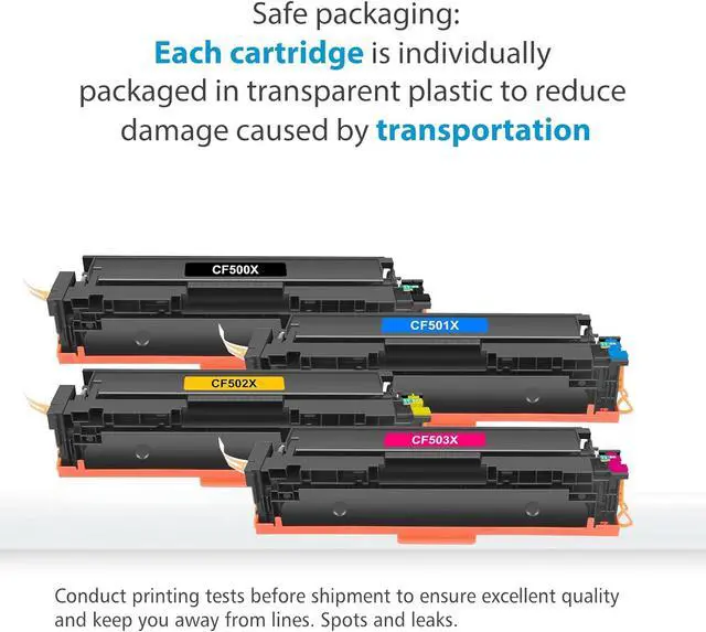 High Page Yield: Up to 3,200 Pages per 202X CF500X Black Toner Cartridges & 2,500 Pages per CF501X CF502X CF503X Cyan Yellow Magenta Toner Cartridges (Letter/A4, at 5% Coverage)