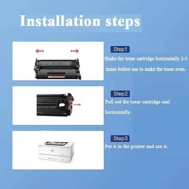 Shake the toner cartridge horizontally 2-3 times before use to make the toner even.