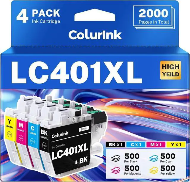 Page Yield: Up to 500 Pages per LC401XL Black and Color Compatible for Brother LC401 Ink Cartridges (A4 Letter, at 5 Percent Coverage)