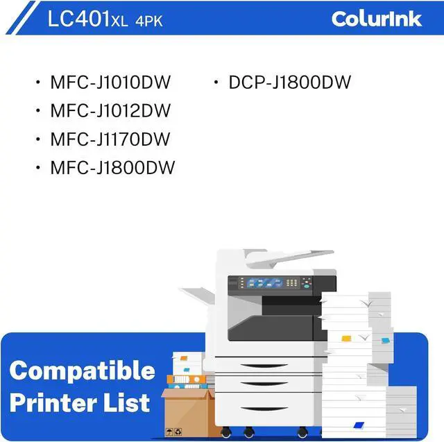 Compatible Printers: LC401XL Ink Cartridges for Brother Printer MFC-J1010DW, MFC-J1012DW, MFC-J1170DW, DCP-J1800DW, DCP-J1140DW MFC-J1010 MFC-J1012 MFC-J1170 MFC-J1800