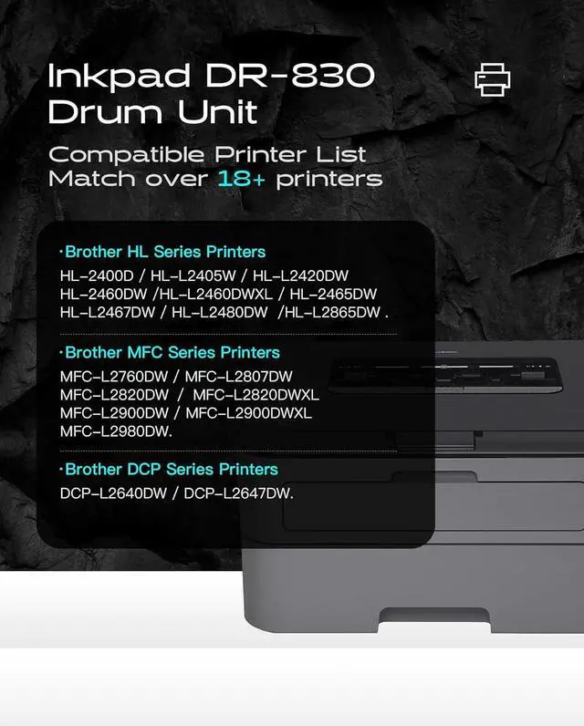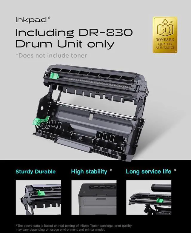 Premium Quality Our iNKPAD DR830 drum unit replacement is meticulously produced following strict ISO 9001 and ISO 14001 STMC standards. Each batch undergoes a comprehensive 7-step quality assurance process, ensuring consistent excellence in printing quality, endurance, and reliability.