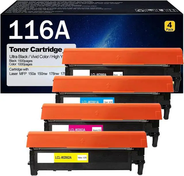 Compatible Printers: 116A W2060A W2061A W2063A W2062A toner cartridges are specially designed to be compatible for HP Color Laser MFP 150a 150nw 178nw 179fnw Printers