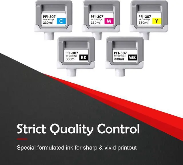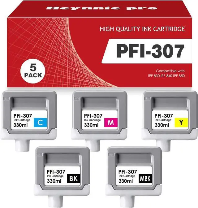 Package Contains: 5 Pack PFI 307 ink cartridges (matte black x1, black x1, cyan x1, magenta x1, yellow x1)