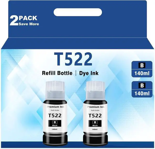 Package Contents: 2 packs Black (Including 2 * 522 Black ink refill bottles 140 ml). ( Not Sublimation Ink ) (total 2 pack,280 ml ,i.e 9.5 fl oz)