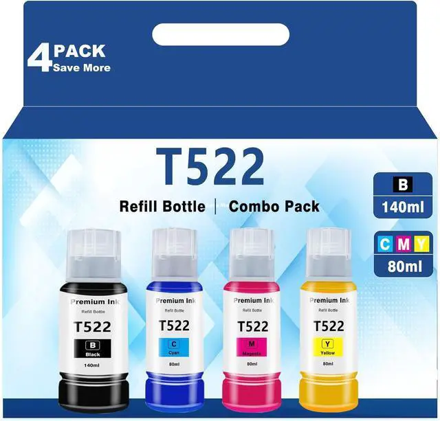 Package Contents: 4 packs Black and Color Multipack (Including 1 * 522 Black ink refill bottles 140 ml, 1 * 522 Cyan ink refill bottles 80 ml, 1 * 522 ink refill bottles Magenta 80 ml, 1 * 522 Yellow ink refill bottles 80 ml). ( Not Sublimation Ink ) (total 4 pack, 380 ml,i.e 12.8 fl oz)