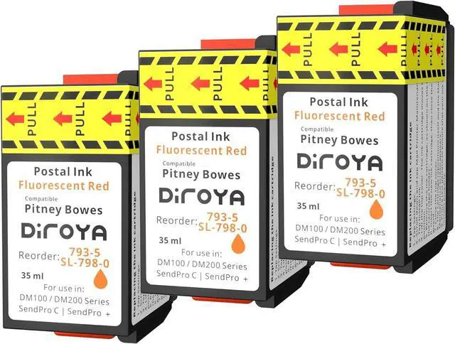 High Yield & Vivid Color: SL-798-0, 793-5 ink cartridge This DIROYA ink cartridge is designed for high volume mailing, containing 35ml of fluorescent red ink that yields crisp, clear imprints on your mail.
