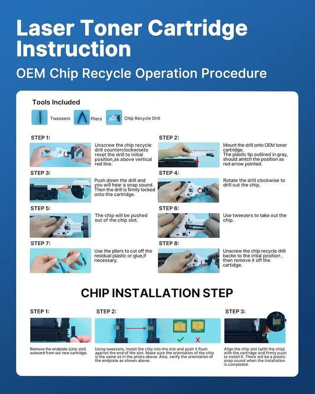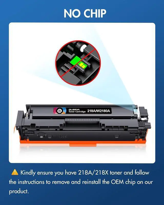 Warm Note: 218A toner cartridge replacement for hp 218a toner cartridges 4 pack is NOT equipped with chips. Kindly transfer OEM chips to this 218a replacement for hp 218a hp 218x